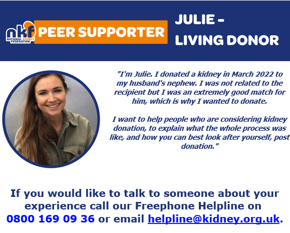 The NKF Peer Support Service is a national, free service that connects patients, carers, and families with someone who has lived experience of kidney disease.